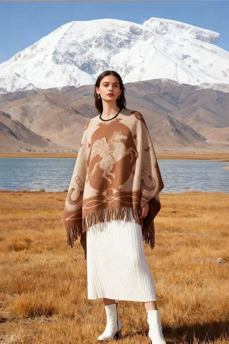 “飞马提花”羊毛披肩斗篷